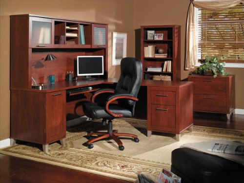 "Somerset Collection L-shaped Desk with Included Hutch in Hansen Cherry" Feature